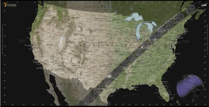 Check out this incredible YouTube video by Great American Eclipse showing the path of the eclipse as it casts its shadow over Mexico, America, and Canada.